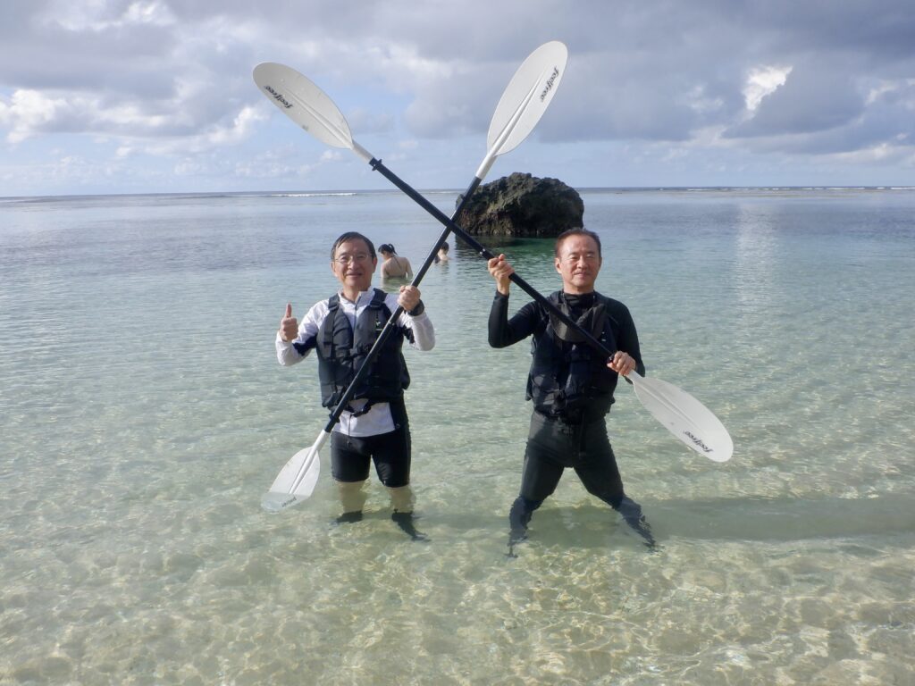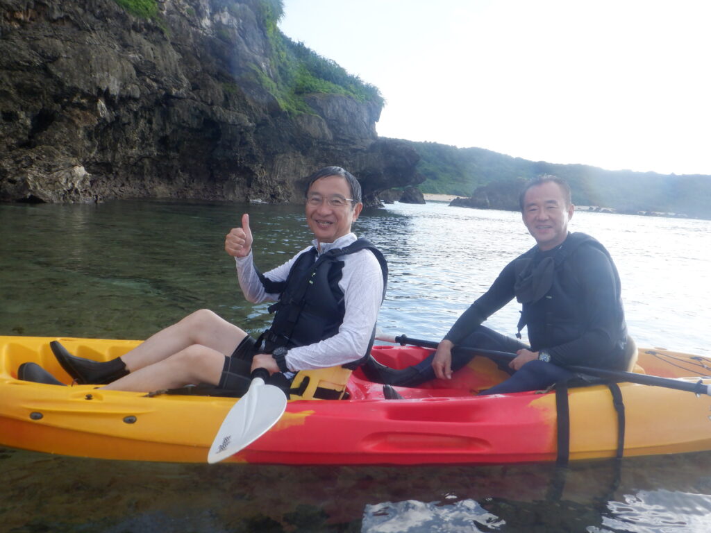 本日は、年配の男性お二人が「カヤックで行く鍾乳洞探検隊」に参加してくださいました。