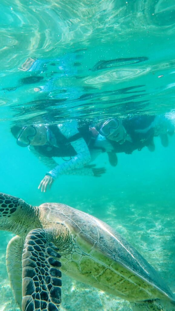 「可愛い〜!ウミガメ〜💕」「あっちにもいる〜!」と笑顔が弾けます。