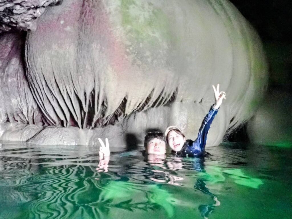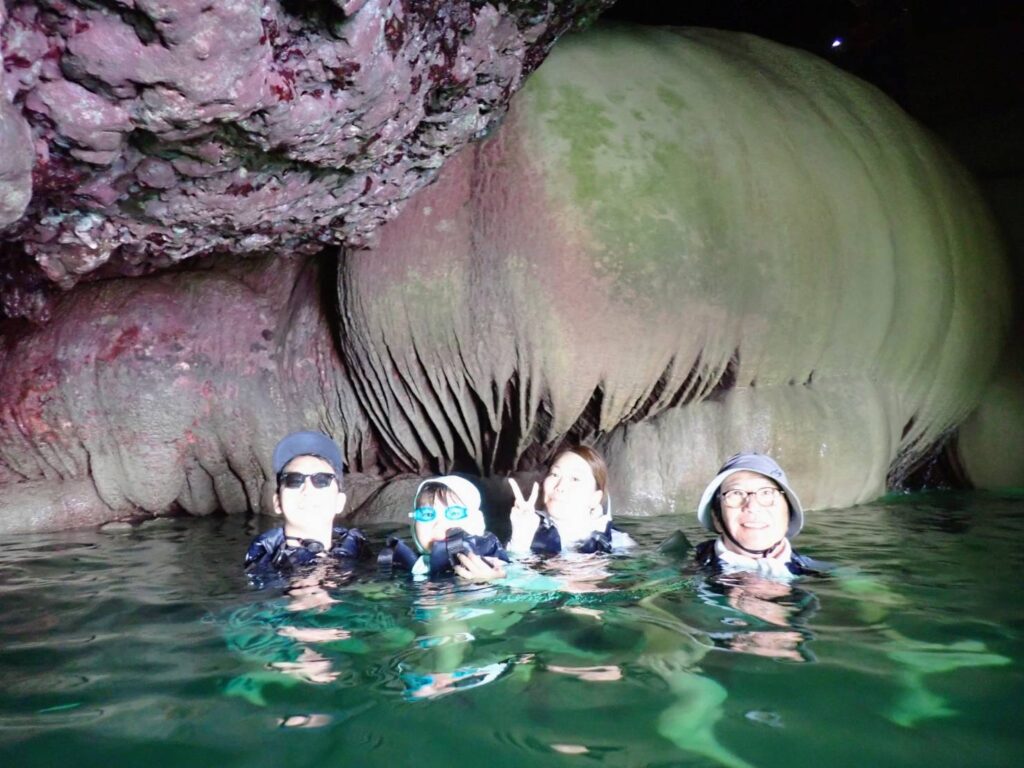「カヤックで行く鍾乳洞探検隊」に4人のご家族様、そして「アドベンチャーカヤック」にはお若いご夫婦のお二人様が参加してくださいました。