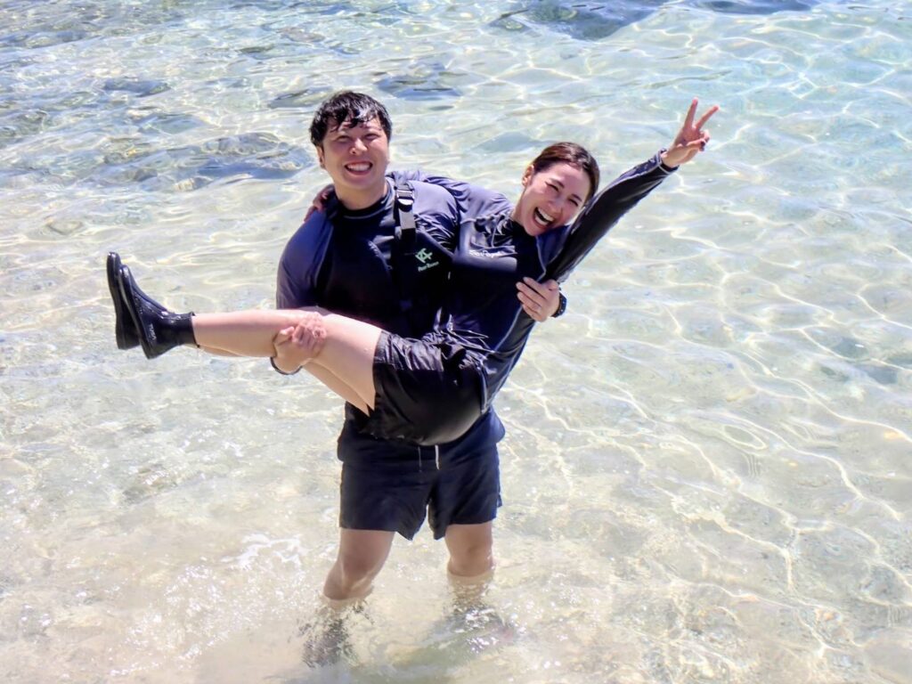 どちらのグループも宮古島は初めてで、「アドベンチャーカヤック」に申し込まれたご夫婦は「せっかくの初宮古島だから、海をしっかり体験したい!」とのことで、このツアーを選ばれたそうです🌊
