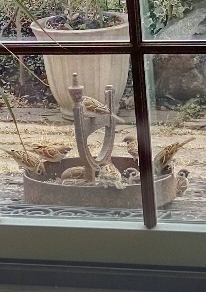 私は、身近な鳥🐦…スズメやヤマバト🕊️を眺めるのが好きで、東京では朝の1回だけエサをあげていました。