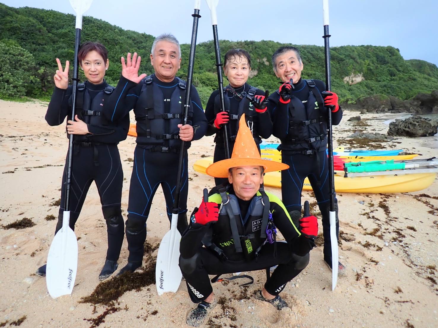 時折、雨が降る中、「カヤックで行くハロウィン鍾乳洞探検隊🎃」のスタートです🌧️