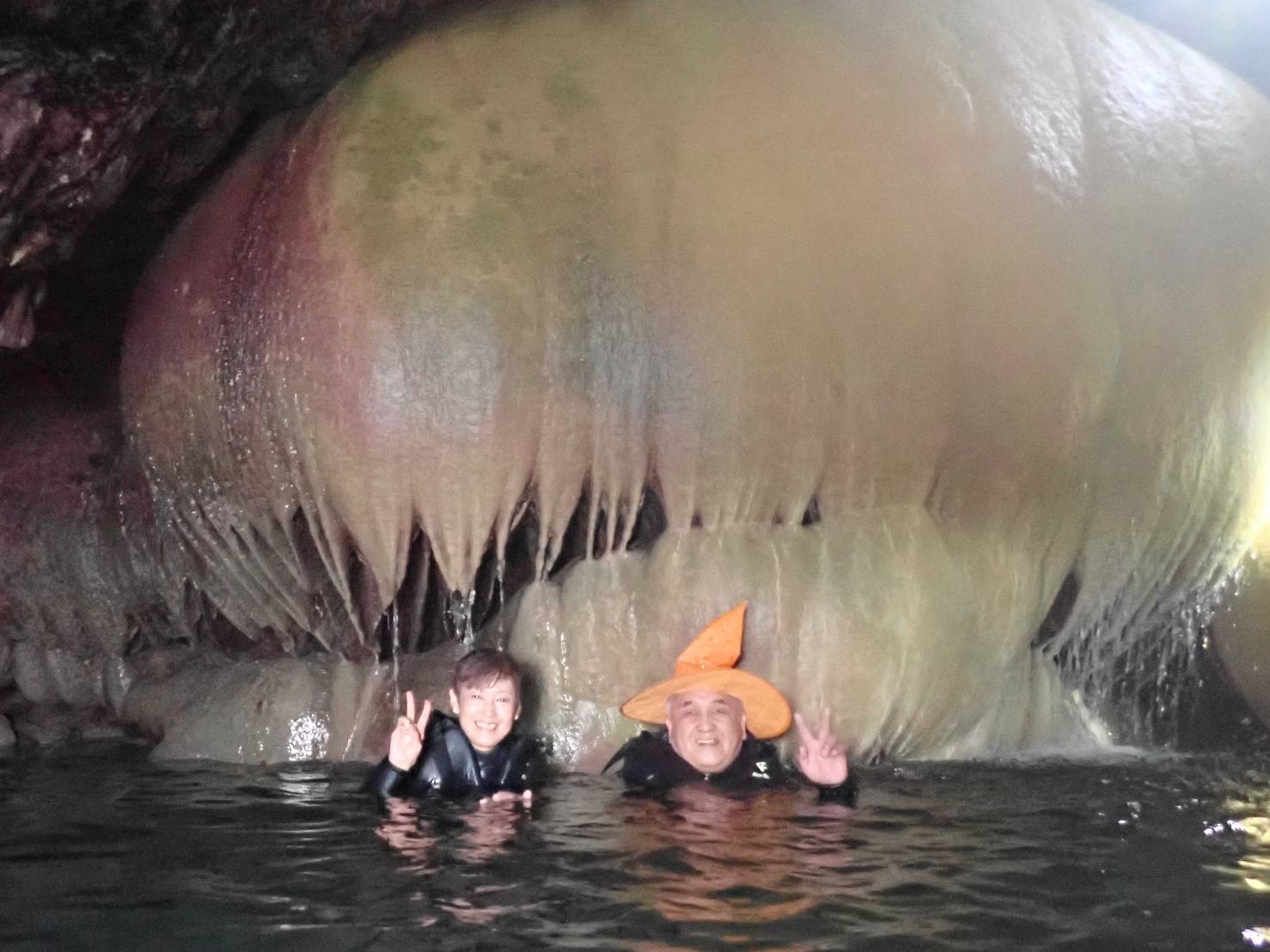 鍾乳洞から出てきたご夫婦……