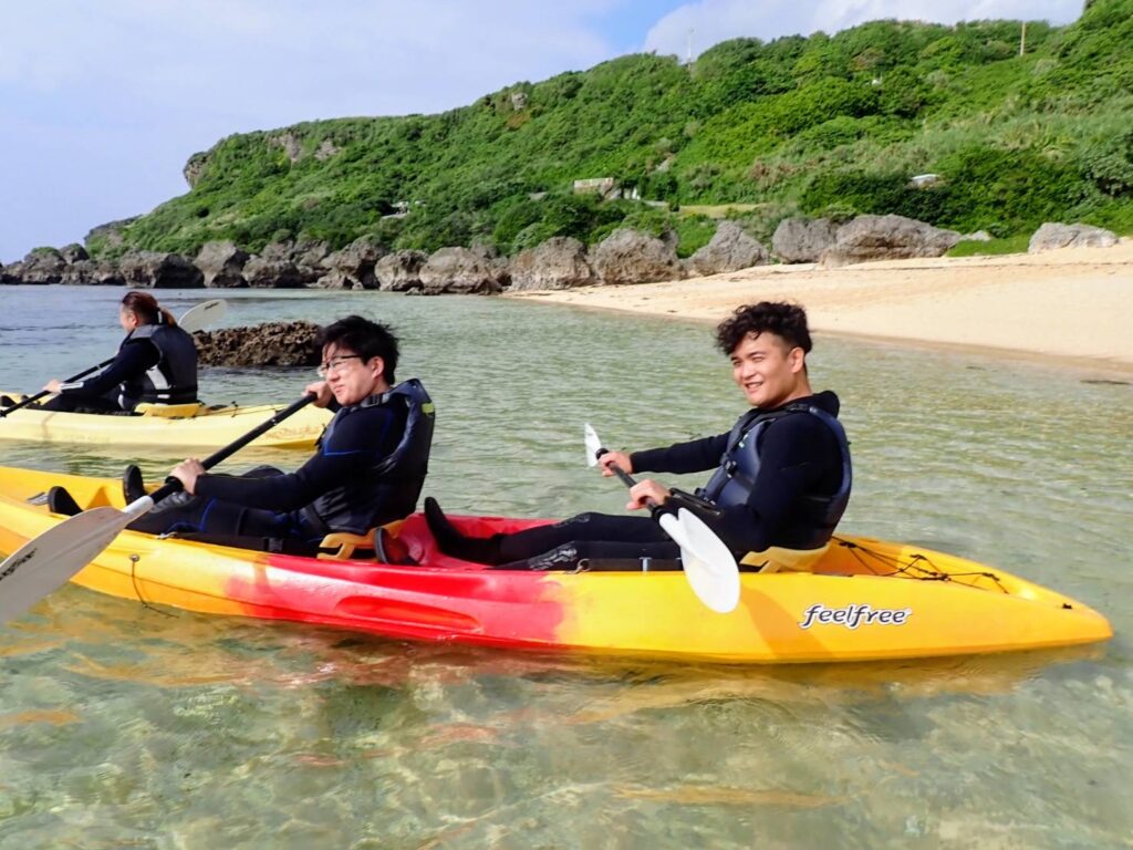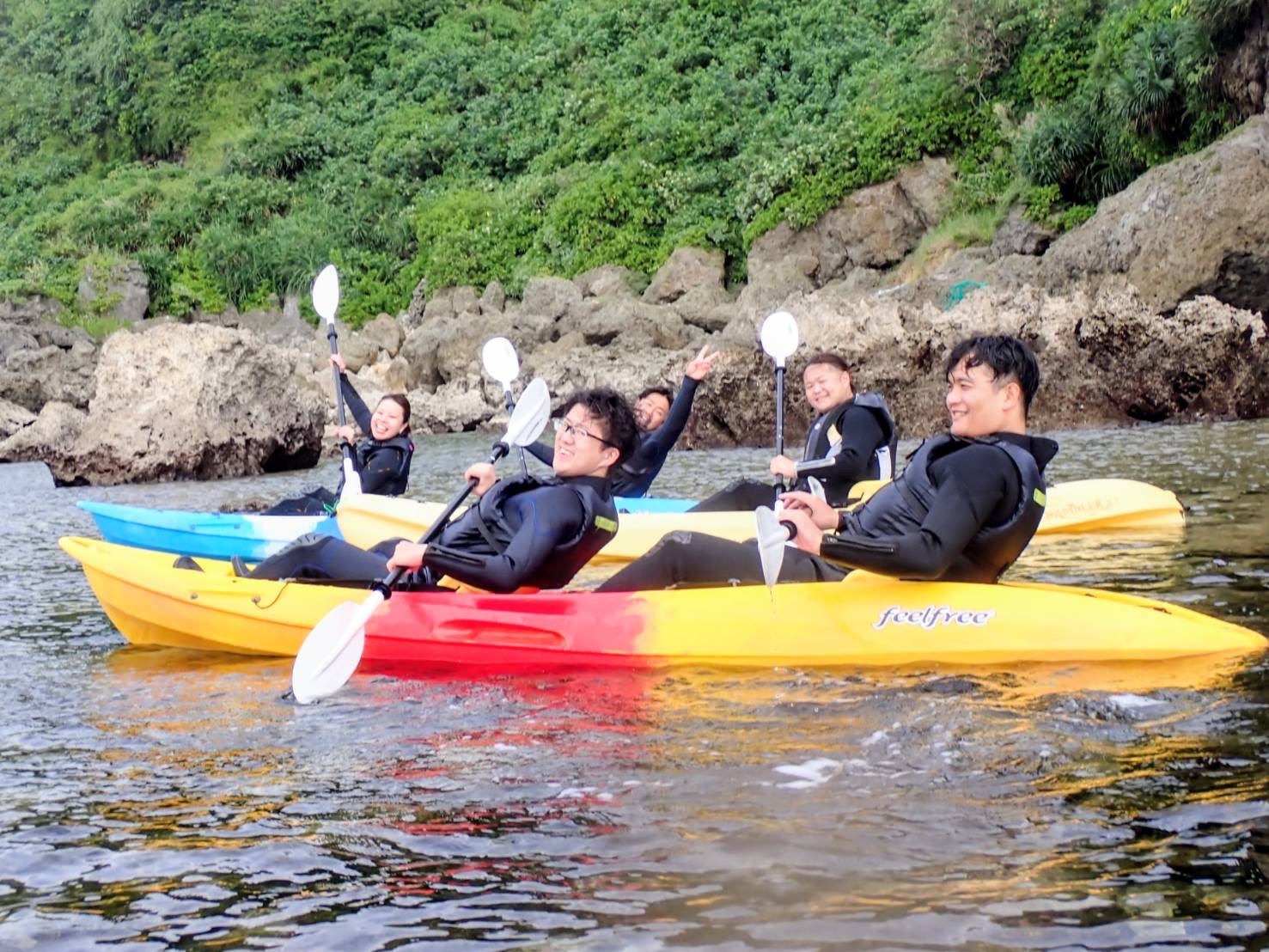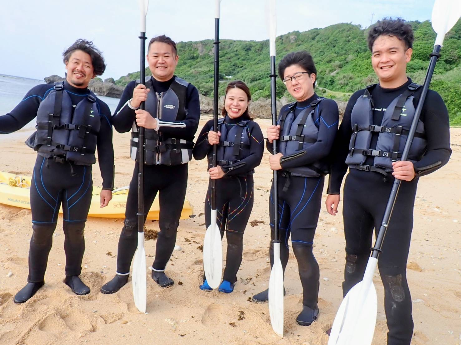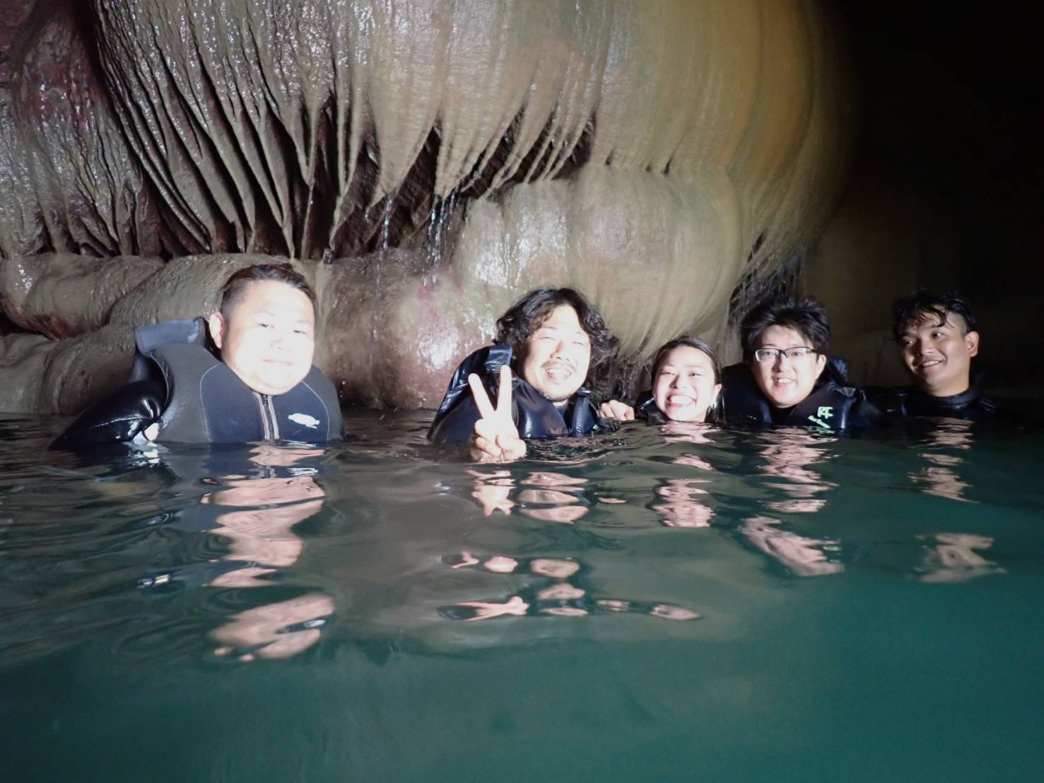 昨晩、電話でのツアー予約📞があり、宮古島の最終日を充実させたいとのことで、会社の同僚5名様が「カヤックで行く鍾乳洞探検隊」に参加して下さいました🚣♂️🌴