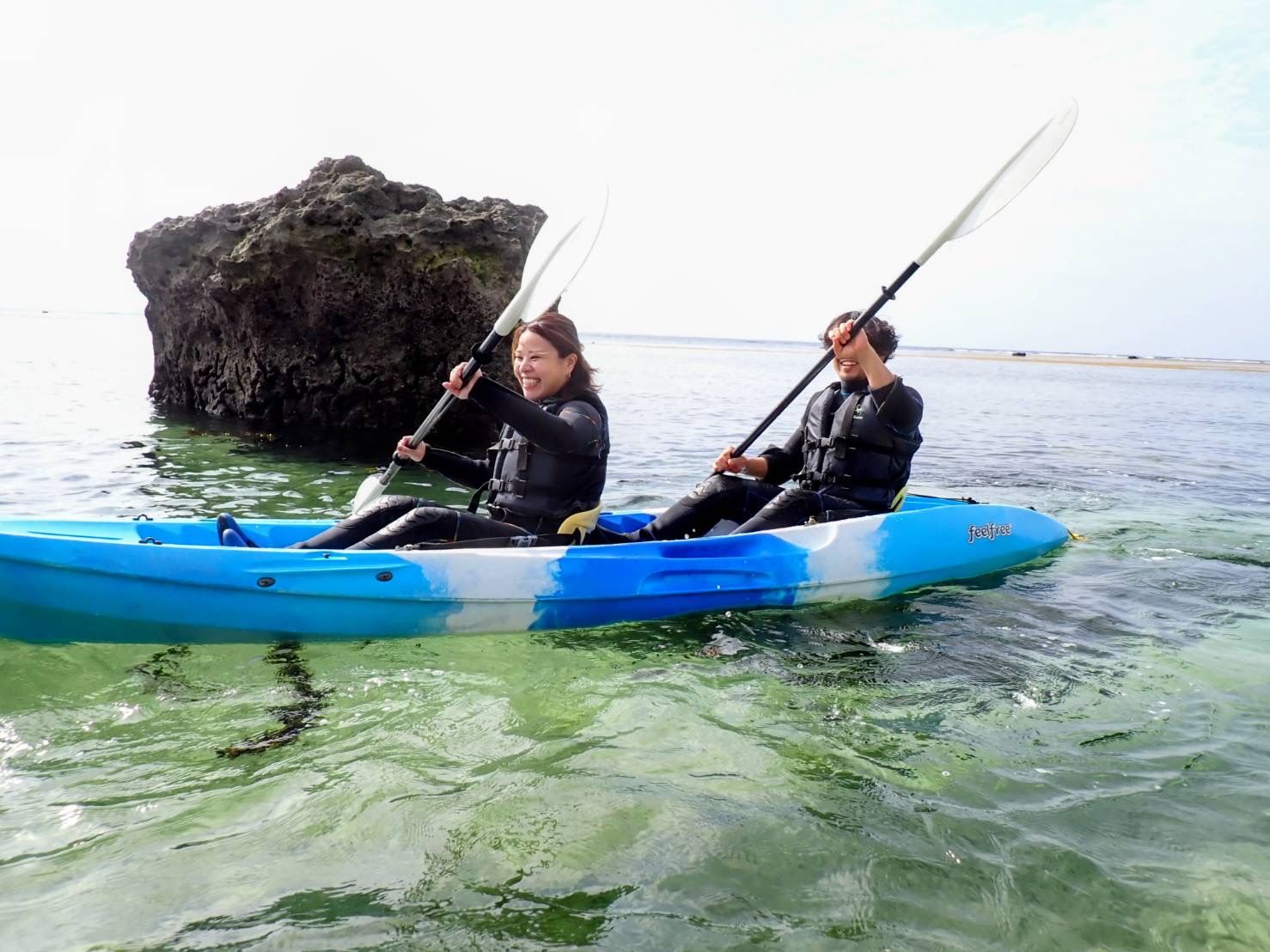 全員、カヤックは初めてとのことでしたが、無難に漕ぎ出し、ガイドの後をついて行きます🌊🚣♀️
